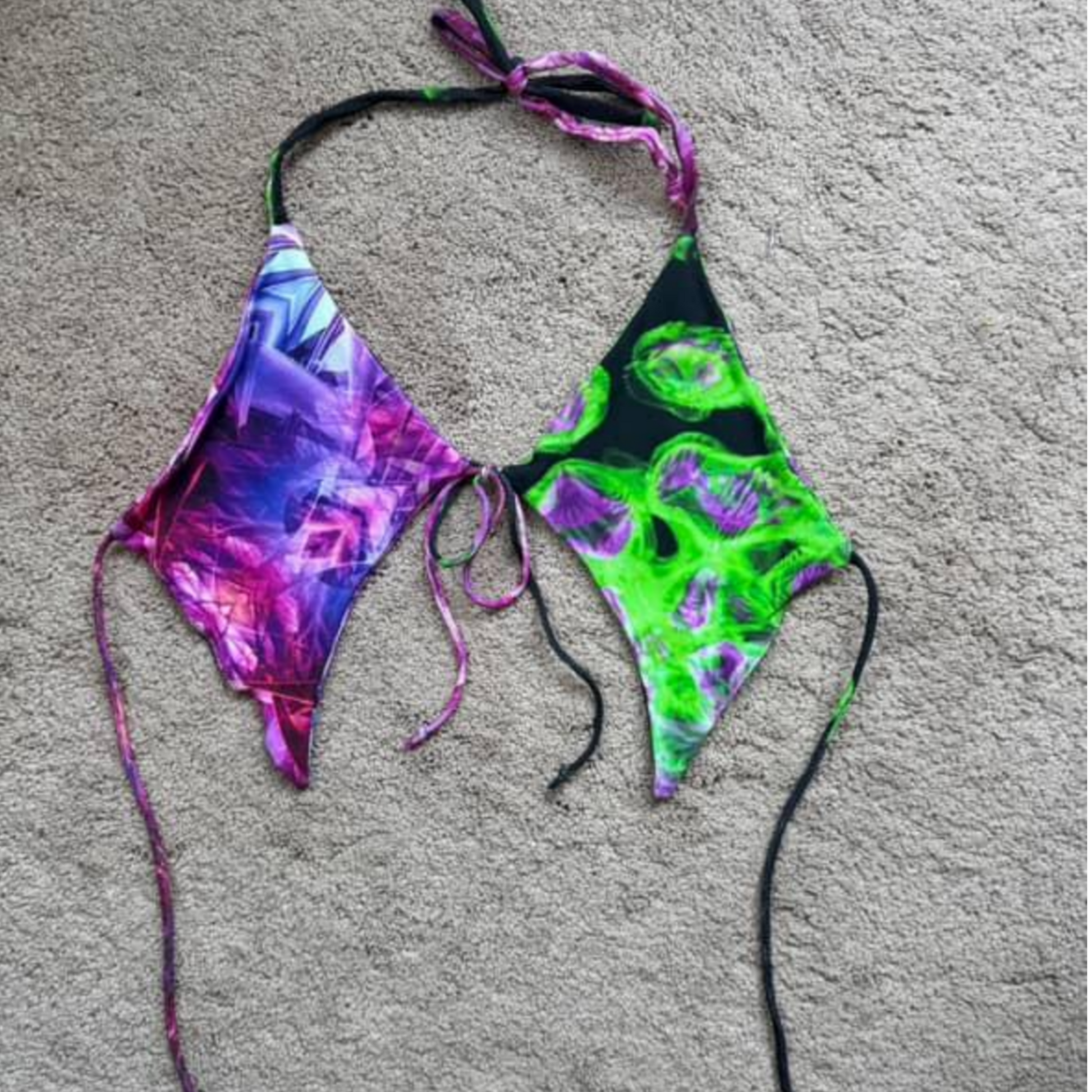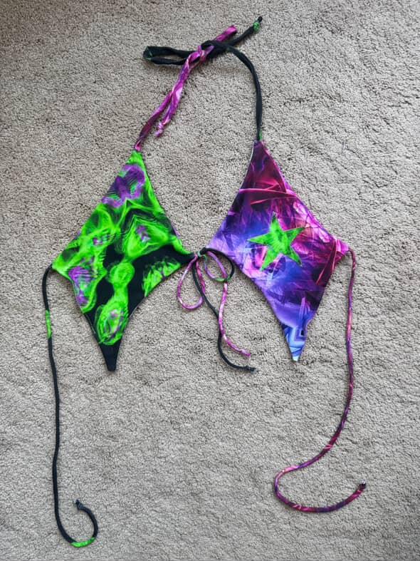 - One side has a green star on the pink fabric, hand cut and sewn on