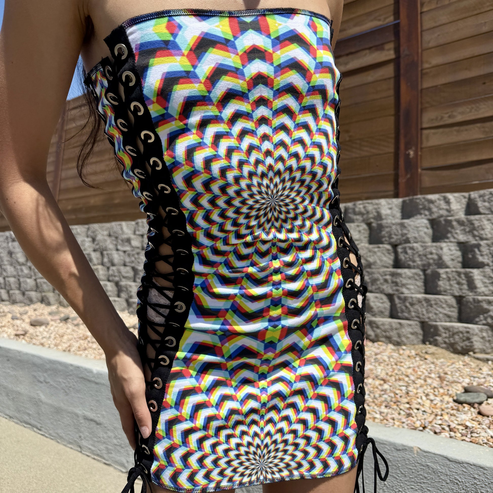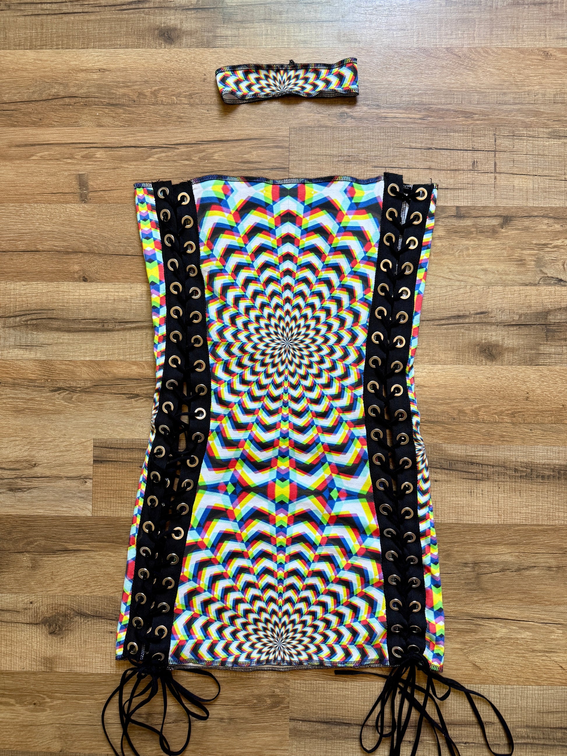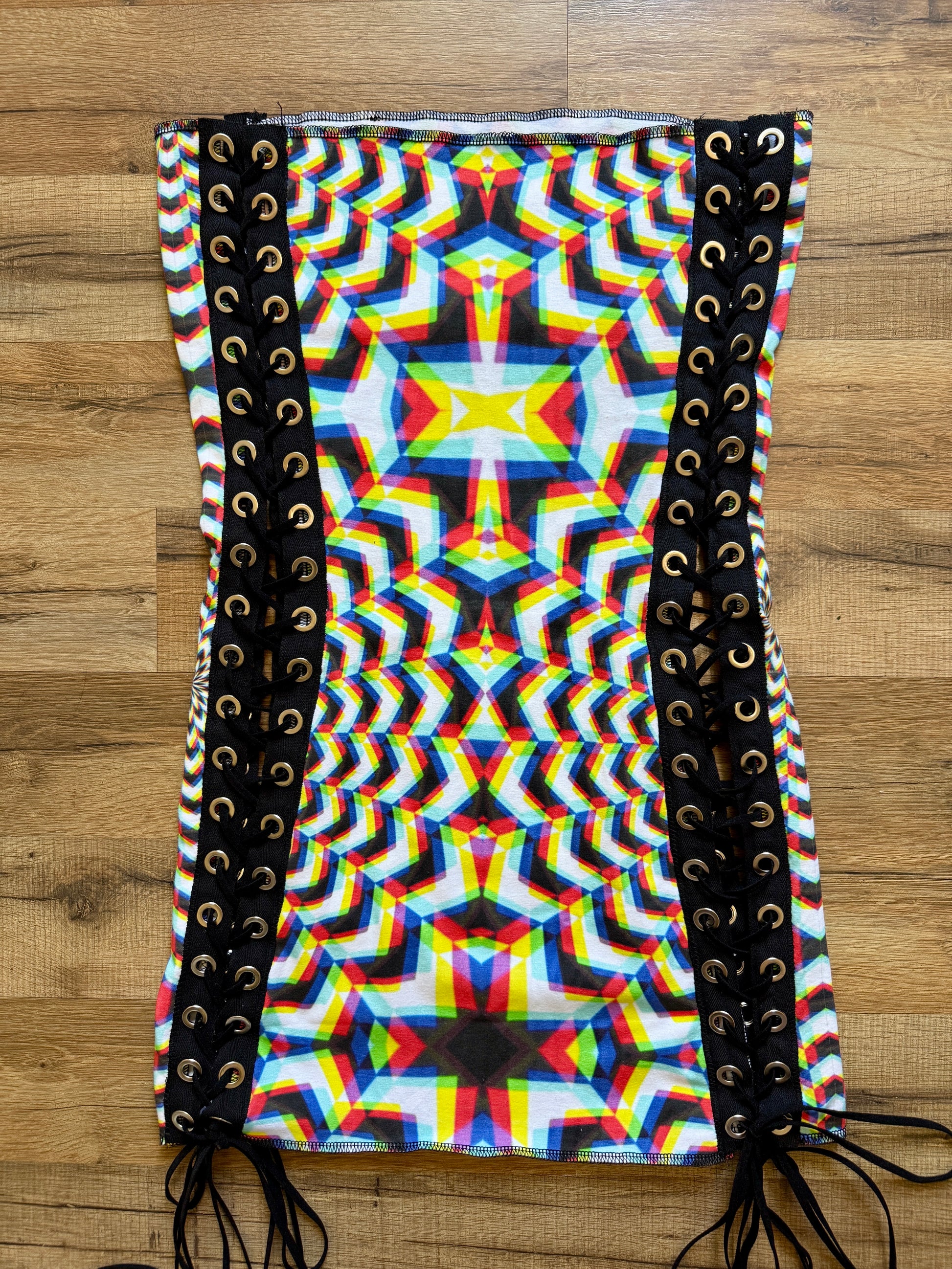 - reversible four panel lace up mini skirt (see pictures for reverse side)